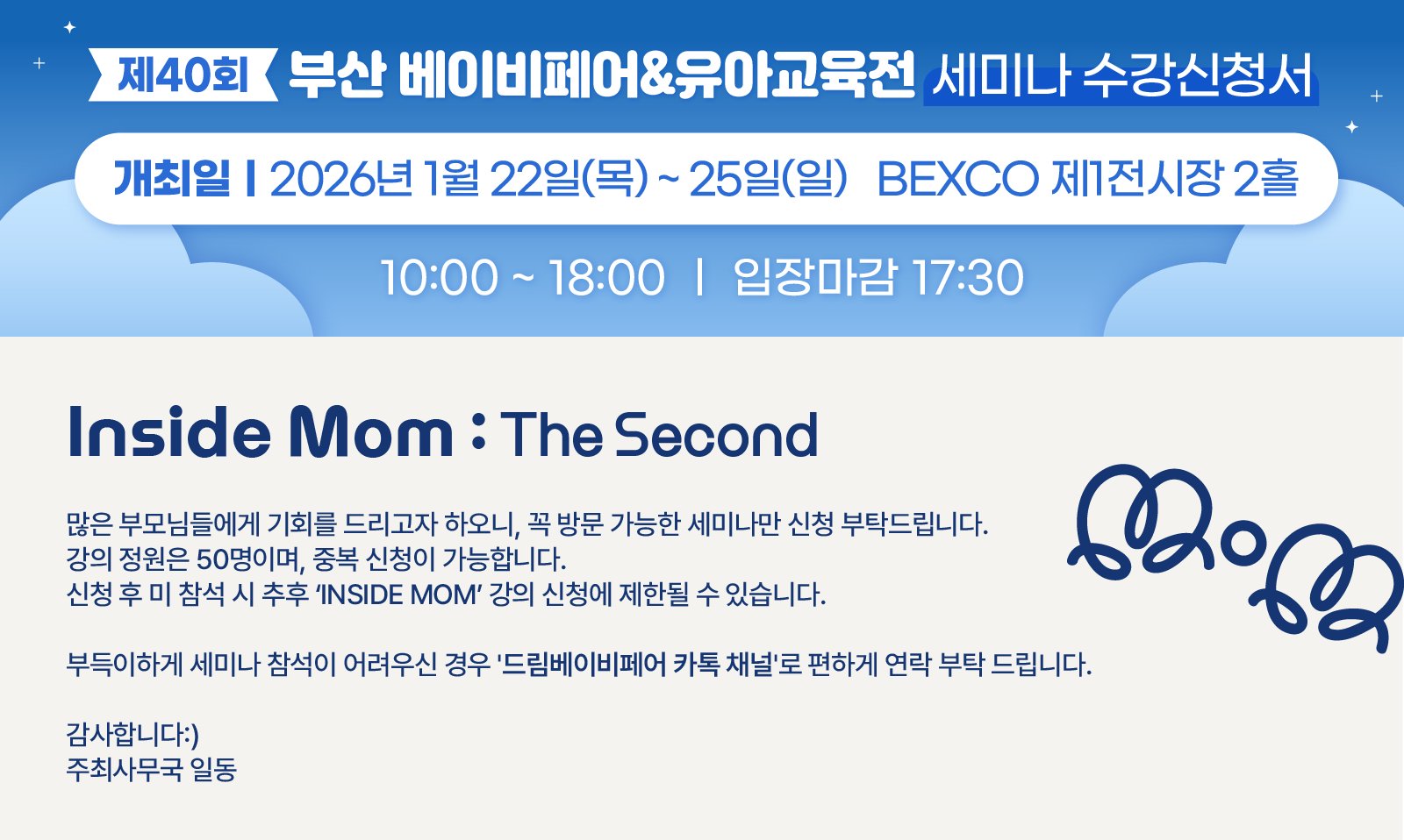 '(주)드림코리아','(주)앤유','(주)블루케이'에서 주최 또는 주관하는 '드림베이비페어','부산 베이비페어&유아교육전', '글로벌 베이비페어', '부산 카페쇼', '부산 주류쇼' 메세지, 카카오톡, 이메일, 우편물, SNS채널 등을 통한 민원사무 처리, 재화 또는 서비스 제공, 이벤트 공지 및 마케팅/광고에의 활용