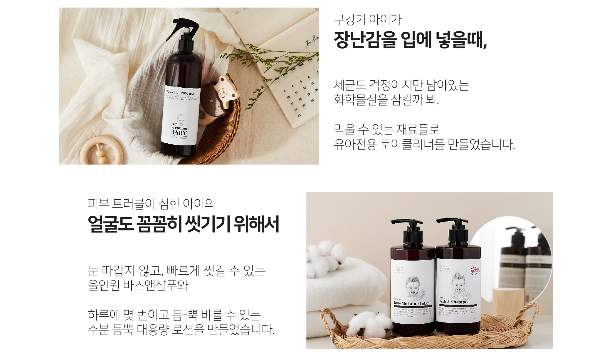 베이비 로션, 썬크림, 바디워시, 샴푸 등